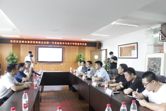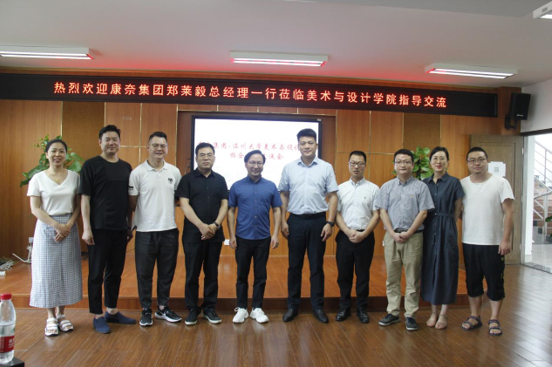 7月4日下午,康奈集团总经理郑莱毅、副总经理吴圣能及集团党委书记蔡发荣一行来beat365官网交流座谈,学院党委书记叶正飞、副院长顾任飞、设计学学科带头人李运河及专业教师出席座谈会。