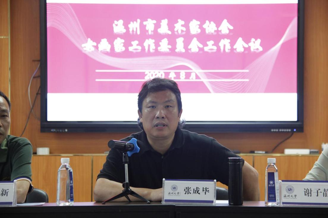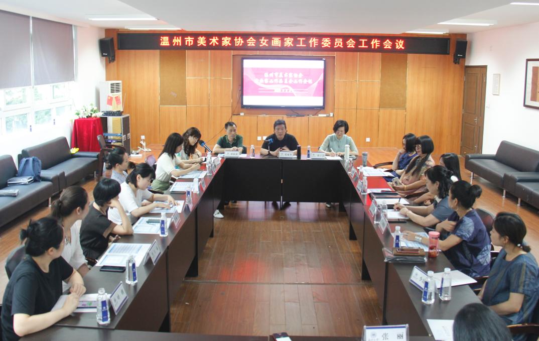 2020年8月7日下午,温州市美术家协会女画家工作委员会工作会议在beat365官网举行。中国美协理事、市美协主席张成毕出席会议。beat365官网党委书记叶正飞、校工会副主席陈文远到会祝贺,叶书记致辞并介绍了美院的办学情况。出席会议的还有市美协秘书长潘新新、副秘书长金婧婧、常务理事叶海华等。会议由市美协副秘书长、女画家工作委员会秘书长林翼如主持。
