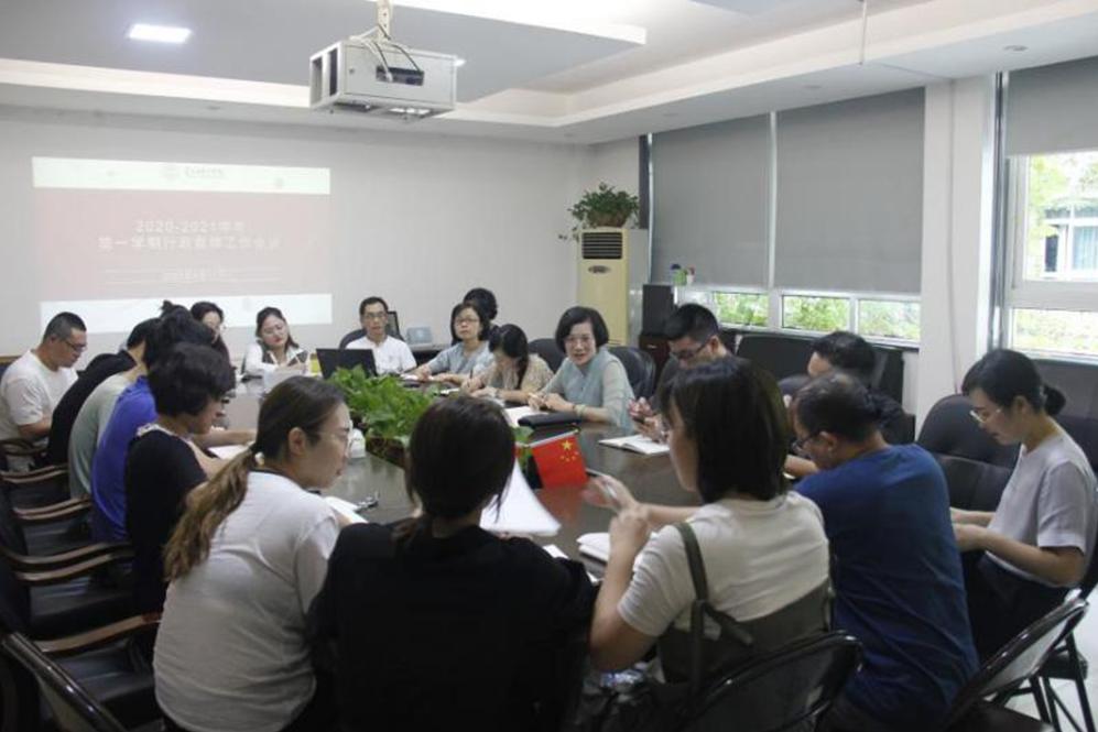 2020年9月17日下午,beat365官网召开新学期行政教师工作会议,学院院长谢子静、党委副书记杨丽君、副院长胡文超等出席会议,全体行政教师参加会议。会议由谢子静主持。