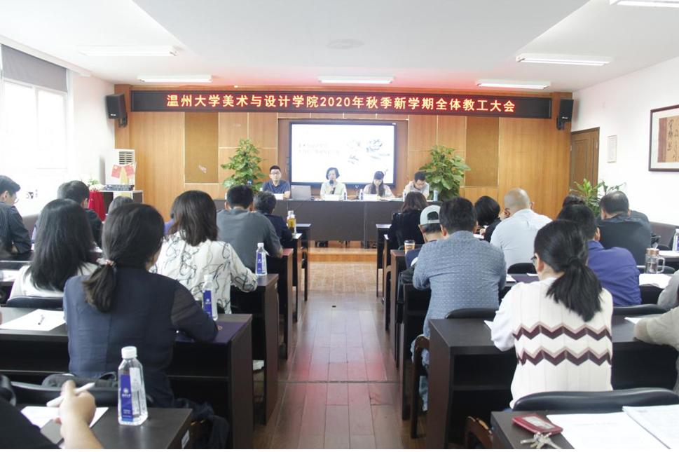 9月23日,在2B4001召开beat365网页版登录官网2020年秋季新学期全体教工大会,院长谢子静、党委副书记杨丽君、副院长胡文超、副院长顾任飞等出席会议,全体教职工参加会议。会议由杨丽君副书记主持。 会上,杨丽君副书记传达了2020年暑期党委理论学习中心组(扩大)学习会上校党委书记谢树华《锚定发展目标、深化治理改革、激发主体动能,在新起点上努力推进学校实现高质量发展》重要讲话和校长赵敏《科学谋划、乘势而上,以“重要窗口”标准奋力推进高质量发展》“十四五”规划专题报告的主要精神。 随后,杨丽君副书记介绍新教师个人情况,并宣布新教师的结对工作导师。谢子静院长为新教师佩戴校徽、赠送入职礼盒,胡文超副院长为担任新教师工作导师的教师颁发聘书。朱国平老师代表新教师发言,衷心感谢学院领导的关怀和帮助,并表示,学院为新教师提供了广阔的发展空间,未来也要为美院的建设不遗余力地去奉献。 紧接着,杨丽君副书记、胡文超副院长、顾任飞副院长分别围绕着学院下半年的重点工作进行了具体部署。 最后,谢子静院长作学院工作报告。首先,她充分肯定了在疫情之下,学院各项工作能稳步推进,主要工作取得了显著成绩,并向辛勤付出的教职工表示感谢。随后,谢院长作学院“十三五”总结和“十四五”发展规划的专题报告。她回顾了学院在“十三五”期间取得的成绩,也指出了存在的问题和困难。针对学院发展面临的机遇与挑战,她提出了学院“十四五”发展时期人才队伍建设、学科建设、专业建设、人才培养、科学研究、服务地方、国际合作、党的建设等八大方面的工作目标和具体任务,并要求全院教职工为实现“建设具有较强办学实力、特色鲜明的省内高水平艺术学院”的目标而不懈努力。最后,她对新学期的工作思路和重点工作作了部署。她提出,本学期学院要坚持全面从严治党,切实加强党的建设,围绕着“以本为本、科教融合,聚焦人才、内培外引,校地互动、服务地方,搭建平台、合作办学”,完成“优化人才队伍建设、做强专业建设、做特服务地方”三大目标,持续推进学院事业发展。