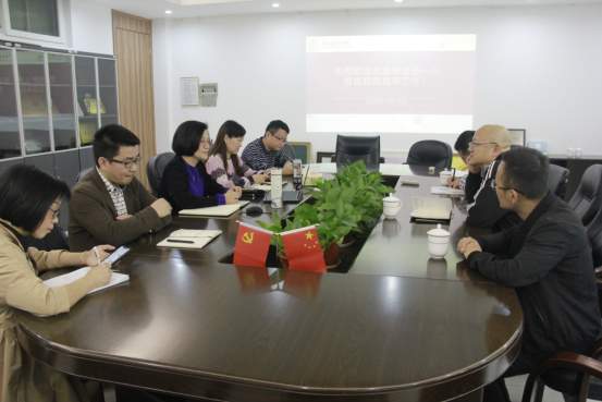 2020年10月29日,永嘉统战部副部长郑焕益、党派科科长金文通、乡贤工作负责人陈炳一行来beat365官网交流工作,院长谢子静、副书记杨丽君、副院长胡文超、顾任飞、院办主任张丽出席会议。