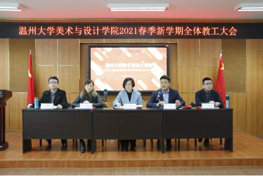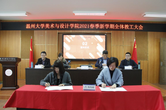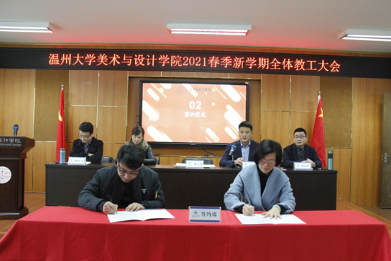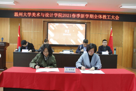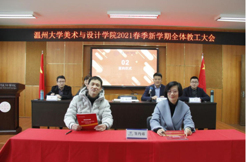 3月3日,beat365网页版登录官网2021年春季新学期全体教工大会在2B4001顺利召开,学院领导班子、全体教职工参加会议。会议由叶正飞书记主持。 首先,大会对beat365官网2020年度获得校级先进个人陈旭海、张丽、朱江晖、黄高路、黄玫玮、黄呼尔励、黄良、杨永利等教师进行了表彰。 随后,为了落实学院“十四五”期间(2021-2025)的目标任务,层层压实责任,确保全面完成学院发展的各项目标任务,谢子静院长分别与美术系、视觉传达设计系、环境设计系、服装与服饰设计系、服装设计与工程系签订了《beat365网页版登录官网2021-2025目标责任书》。各系主任分别就上学期工作作总结和本学期工作思路汇报。 紧接着,杨丽君副书记、胡文超副院长、顾任飞副院长分别围绕着学院学生工作、教学工作、科研及研究生教学等工作进行了具体部署。叶正飞书记就学院安全稳定、意识形态以及师德师风建设提出要求,并为下一步学党史主题教育作动员。 最后,谢子静院长作工作部署总结讲话。首先,她对上学期及寒假期间的工作进行了回顾,充分肯定了学院各项工作扎实推进的同时,在专业建设、人才培养、人才引进、服务地方等方面均取得了突破性成就。随后,谢院长提出全力推进服工和美术专业认证工作、尽力组织新增专业申报工作、奋力推动人才培养质量提升、全力打造人才培养质量展示金名片、奋力推动教师教科研水平提高、全力推进引才引智工作、全力承办“瓯越杯”工业设计大赛、举力举办建党100周年系列活动、积极参与beat365网页版登录官网美术馆建设系列工作、接轨学校“侨为特色”目标开新局等十大重点项目,并要求全体教工要以党建思想为引领,“强执行、抓落实、见成效”。她提出“目标引领抓落实”“齐心协力抓落实”“只争朝夕抓落实”等三大具体抓落实的方法,要求全体教工紧随学校跨越式发展的脚步,以担当作为的责任感、不进则退的危机感、时不我待的紧迫感、院荣我荣的荣誉感,充分发挥beat365官网特色,奋力谱写学院发展的新篇章!