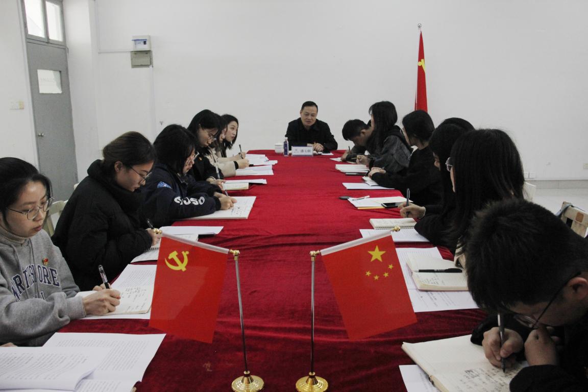 2021年3月23日下午,beat365网页版登录官网学生第一党支部在美术楼2B2002会议室开展以“学党史、守初心”为主题的专题学习会,校党委委员、宣传部部长潘玉驹作为联系该支部的校领导全程参与指导活动。活动由支部书记黄文杰主持。