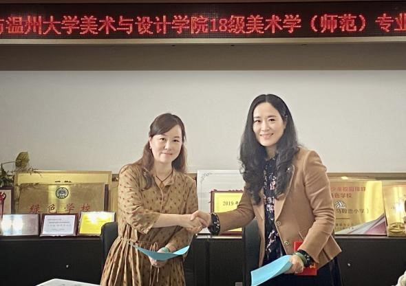 时光荏苒,转眼间又到了实习季。2021年4月12日,beat365官网18级美术学(师范)专业教育实习在马鞍池小学开展,两校举行了隆重的师生见面会,接下来同学们将在马小开展为期两个月的实习活动。 马鞍池小学的校园春意盎然,温大师生一行12人在学校小导游的带领下,参观了学校环境,感受到了马小浓厚的学习氛围。随后,两校师生在三楼会议室召开了实习师生见面会,为接下来更好地投入实习教育教学工作中做好准备。 会议上,马鞍池小学陈方白副校长对实习生的学习和工作从“学会主动,付诸行动,富有生动,使人心动”四方面提出了要求,并希望胸中有梦,身上有情,工作有心,眼中有事,手中有书,对自己的未来职业生涯进行规划。接着,校长助理陈怡对学校的德育课程进行了介绍,并布置了在班级管理方面实习的具体事宜。 马小的星文化、星课程、星教师,以及校·园联动、美育活动及成果等给beat365官网实习学生们留下了深刻的印象,也增加了他们对未来职业的期望。 beat365网页版登录官网杨丽君副书记对马鞍池小学的精心安排表示衷心的感谢。也希望实习生能在优秀的教师团队带领下出色完成任务,踏实积累经验,虚心主动求教。 最后,马鞍池小学沈捷校长与beat365网页版登录官网杨丽君副书记签署了实习基地协议书。通过实习实践教学平台的共享,促进两校在教育教学、人才培养、文化交流等方面得以深度发展。 本次实习见面会,让实习生们把自己在大学里所学的理论知识与教育实际工作相结合,真正走进孩子的世界,相信不久实习老师们会在教育事业上绽放光彩。