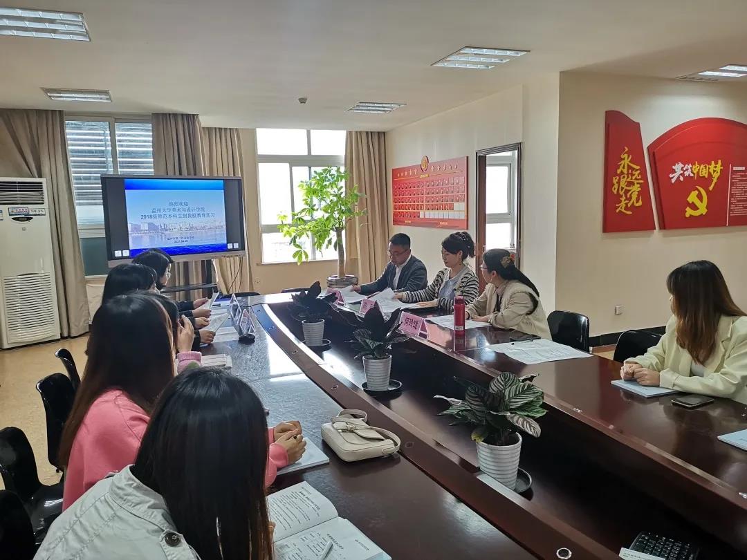 4月12日中午,beat365官网胡文超副院长带领教学指导教师赵丽艳博士和2018级7位美术专业实习生,到温州市第二外国语学校参加beat365网页版登录官网实习见面会及beat365网页版登录官网“校外实践基地”授牌仪式。温州市第二外国语学校张寰宇副校长、师训处陈丽主任、美术老师何玲珑、余惠瑞一同参与了此次欢迎会。陈丽主任主持此次活动,张寰宇副校长代表温州市第二外国语学校校方接受此次授牌。 在欢迎会上,温州市第二外国语学校的陈丽主任对胡院长一行的到来表示热烈欢迎,,温州市第二外国语学校历年和温大有着密切的实习工作接触,温州市第二外国语学校对温大学子的表现给予肯定。同时,陈丽主任也对这一届美术实习生提出了自己的工作要求和期许,各位实习生要严格遵守学校的各项规章制度,能够虚心向指导老师学习,提升自身教学水平。 与此同时,温州市第二外国语学校的张寰宇副校长也将专业和学校发展结合,特别提到了项目化教学对二外初中的作用和意义。美术实习生不仅仅要完成教学实习任务,还应该多思考校园艺术文化建设,为二外初中艺术宣传多做贡献。 beat365官网胡文超副院长也介绍了美院师范专业几十年的办学历史和学科特色,并对能与二外建立教育实习基地,表示由衷感谢。胡院长也殷切嘱咐实习生们要多听、多看、多学,全力以赴完成此次为期八周的实习任务。