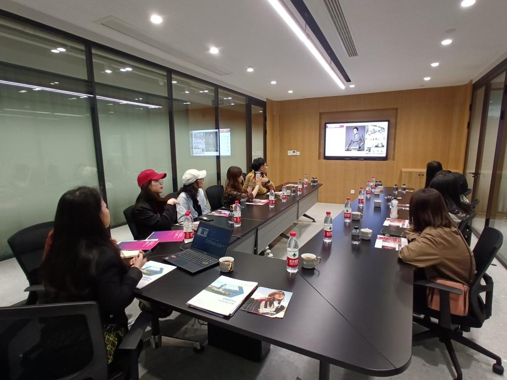 接着,学院一行人又走访了温州高姿商贸有限公司,该公司隶属于上海凰艮时尚集团,公司经历25年的发展,旗下拥有众多品牌和购物中心,成绩在业界有口皆碑。凰艮时尚集团人力资源总监谬丹丹女士、温州高姿商贸有限公司总经办林加娇女士等对走访的师生表示了热烈的欢迎。首先在林加娇女士的安排下,老师和学生们参观了该公司的办公环境、了解了公司的发展、经营理念和企业文化。随后,由谬丹丹总监为我们详细地介绍了公司的发展历程,以及公司对人才培养的规划和员工职业生涯发展的等多方面政策。学院党委副书记杨丽君也就美院毕业生情况、以及学院人才培养、校企合作方面的工作进行了简单的交流。随后,双方交流人员围绕企业选才需求、以及毕业生进入职场发展等话题进行了互动交流,期望未来双方可以进行多方面的人才培养合作。