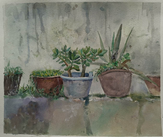 经过4周的辛勤努力,丁海涵老师带领20美师3班的同学们从临摹大师作品入手,体会大师高超作画技巧和色彩感受,了解水彩的特性以及水彩画的魅力。在丁海涵老师的带领与指导下,同学们展开了学校周边写生活动,通过描绘街景、水乡、大罗山以及写生静物来进一步了解水彩画的作画特征,完善自身水彩认知体系。