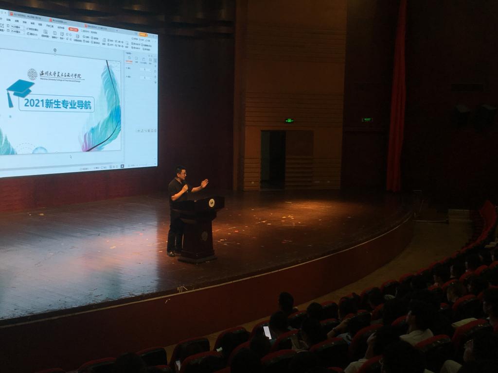 为使新生尽快熟悉专业情况,引导学生潜心向学、志存高远,树立专业意识、科学谋划学业。根据学院始业教育统一安排,beat365官网各专业于9月8日上午,在南校区音乐厅及学院专业教室举行始业教育之新生专业导航活动。 会上,胡文超副院长首先介绍了beat365官网各专业的基本情况,接着对同学们大学四年的学业规划进行指导,特别指出考研、学科竞赛、参展的重要性,现场学生响应热烈。随后beat365官网各专业主任或专业负责人依次进行专业介绍。 图:胡文超副院长正在进行精彩的学业规划指导 图:同学们认真听讲 美术学(师范)系主任陈旭海老师详细讲解了美术学(师范)悠久的历史与雄厚的师资力量,介绍了历届学长学姐优秀的作品,并对新生四年大学生活进行了分析与展望,并就专业下国画、油画、版画、书法四个方向进行了特点介绍。 图:美术系主任陈旭海正进行专业介绍 视觉传达设计系主任刘俊老师详细介绍了视觉传达设计专业,着重介绍了专业发展前景以及同学们在本专业将学习到的专业技能。 图:视觉传达设计系主任刘俊正进行专业介绍 环境设计系主任黄玫玮老师详细介绍了环境设计专业,让学生们更为深入的了解专业前景与就业方向,扫清学生对于环境设计专业盲区。 图:环境设计系主任黄玫玮正进行专业介绍 服装与服饰设计系主任金晨怡老师与教研室主任祝忠良老师分别对服装设计、服装展示设计、鞋履与饰品设计3个专业方向进行了详细的专业分享与就业前景的介绍,并详细讲解了历届优秀的学长学姐的毕业作品。 图:服装与服饰设计系主任金晨怡正进行专业介绍 图:鞋履与饰品设计教研室主任祝忠良正进行专业介绍 服装设计与工程专业负责人朱江晖老师进行专业问题的具体讲解,而后就现场学生积极提出的专业问题,进行了解答与分享。 图:服装设计与工程专业负责人朱江晖正进行专业介绍 新征程,新希望。通过本次专业导航活动,给同学们指明了专业努力的方向,明确了专业学习的目标,使同学们信心倍增投入到学习中去。同时也增进了同学们的学院归属感,增强了“美院人”的使命感。