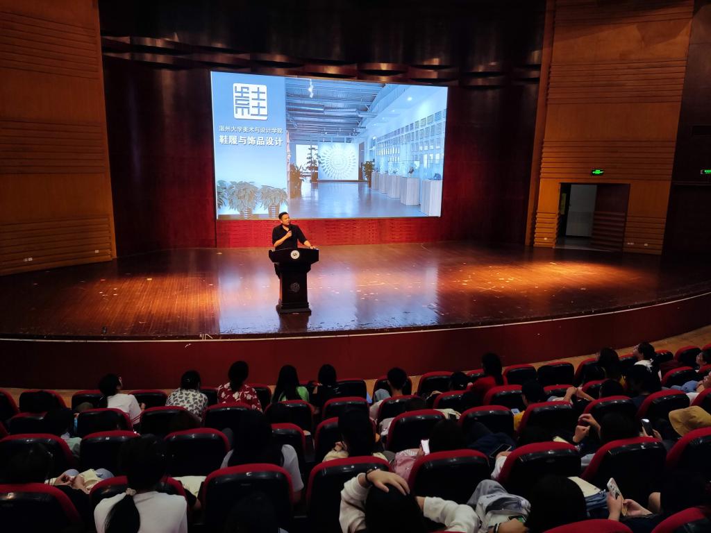 图:鞋履与饰品设计教研室主任祝忠良正进行专业介绍