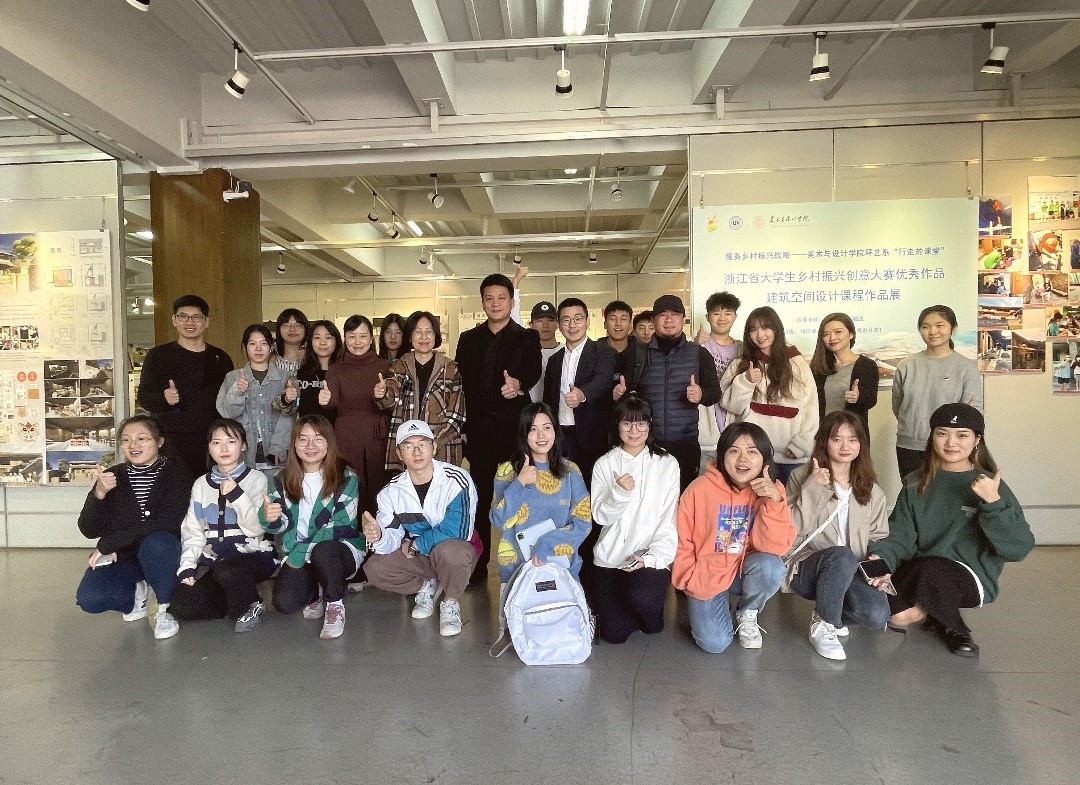11月8日,beat365网页版登录官网环境设计系“行走的课堂”建筑空间设计课程展在beat365网页版登录官网展览厅开展。学院党委书记叶正飞、副书记杨丽君、副院长胡文超到现场观展,并与环境设计系黄玫玮、郑敬玉、潘怡、邓诗雨等指导教师与同学们互动交流。 环境设计系系主任黄玫玮老师介绍,环境设计系致力打造“行走的课堂”课程思政专业特色。本次建筑空间设计课程,通过“以赛促学”“课程+实践”结合的教学方式,深入乡村将课堂与省大学生乡村振兴大赛相结合,与美丽乡村实际项目相结合,在实践训练中提高学生专业素养能力的同时,致力于未来乡村建设,提升学生发挥专业所长服务乡村振兴、服务地方的意识,提升大学生社会责任感。 观看各项目组设计方案和施工现场的项目落地视频后,各课程小组项目负责人介绍了团队组合、设计理念及竞赛项目情况等,两个月的反复设计、多次的基地考察、两个多月的每天早出晚归在施工现场抡起袖子自己干,历时近半年之久……期间的困难和最后的成就感更是让同学们不由自主再次湿了眼眶。期间项目负责人书瑞同学表示,作为一名中共党员,初心就是能为自己的家乡做些什么,在学生时代能有一个这样的机会,对她和同学们来说,是一次难得的机会,也是淬炼专业服务社会一次难得的锻炼,当前学院持续推进服务地方乡村振兴行动,作为党员我们定将身体力行,作好表率。交流期间学院领导频频点赞,给予高度评价。 据悉,本次浙江省大学生乡村振兴大赛专项赛,在泰顺和苍南未来乡村的专项赛道,beat365官网学子荣获2个一等奖和2个二等奖,取得历史突破。 本次展览时间2021年11月5日至11月15日,参展班级:18环境设计本1、19环境设计1班、19环境设计2班。 服务乡村振兴,温大学子在路上!