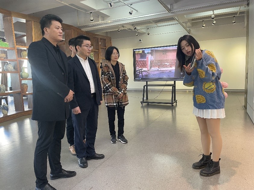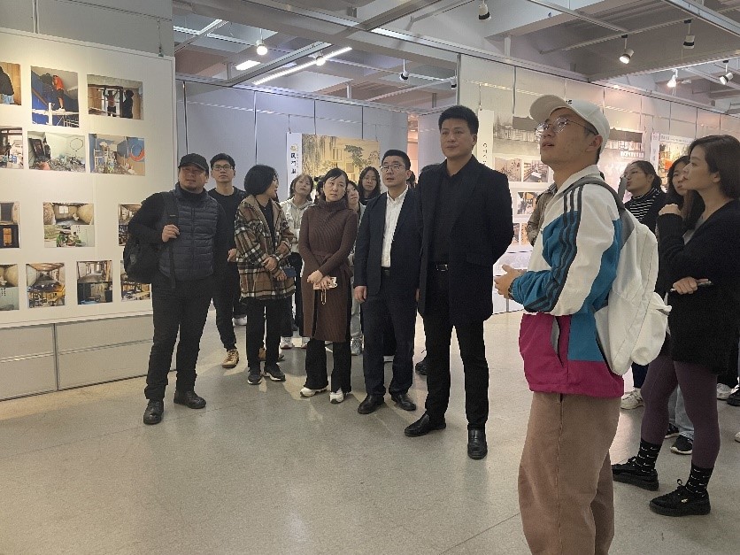 11月8日,beat365网页版登录官网环境设计系“行走的课堂”建筑空间设计课程展在beat365网页版登录官网展览厅开展。学院党委书记叶正飞、副书记杨丽君、副院长胡文超到现场观展,并与环境设计系黄玫玮、郑敬玉、潘怡、邓诗雨等指导教师与同学们互动交流。