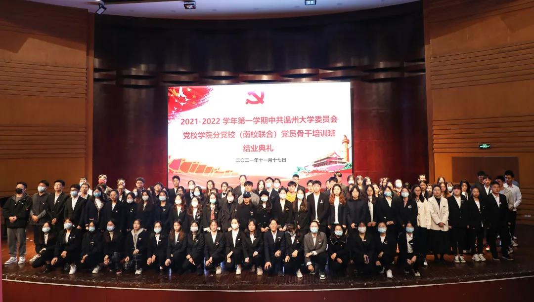 2021年11月17日,2021-2022学年第一学期中共beat365网页版登录官网委员会党校学院分党校(南校联合)党员骨干培训班结业典礼在南校音乐厅顺利举行。数理学院党委副书记章志图老师,生命与环境科学学院党委副书记赵崇峰老师,beat365网页版登录官网党委副书记杨丽君老师和全体124名学生党员骨干出席了本次结业典礼。本次结业典礼由beat365网页版登录官网党建负责老师王颖主持。一、奏唱国歌此次结业典礼在庄严的国歌中拉开序幕。二、学员代表发言首先,学员代表徐严俊同学代表全体学员对培训班老师表达了感谢。其次,他表示,经过一周的党员骨干培训,大家深深感受到了支部党务工作的严谨性和重要性,同时也对支部党员各项流程及规章制度有了更深刻的理解,他坚信大家都会努力做好党员流程的每一步,为成为基层工作的坚强后盾不懈努力。最后,徐严俊同学代表本次参加党员骨干培训班的全体同志郑重承诺:一、努力学习,以过硬的理论知识,武装自己的头脑,积极发挥党员的先锋模范作用。二、以执着的信念,优良的品格,丰富的知识,过硬的本领,永做走在时代前列的先进者、开拓者、奉献者。三、宣读结业学员、优秀学员和最佳理论学习奖名单一周的时间,党员骨干们在培训中凝聚了思想、积累了知识。党员骨干培训班班长张柠同学公布并宣读了结业学员名单及表彰优秀学员的决定。本次党员骨干培训班共124名学员参加,有113名学员顺利结业。其中彭靖涵等25名同学被评为“优秀学员”,朱沁怡等9名同学被颁发“最佳理论学习奖”。四、与会领导为结业学员、优秀学员和最佳理论学习奖获得者颁发证书杨丽君老师为学员代表颁发结业证书章志图老师为优秀学员代表颁发优秀学员荣誉证书赵崇峰老师颁发最佳理论学习奖至此,2021-2022学年第一学期中共beat365网页版登录官网委员会党校学院分党校(南校联合)党员骨干培训班结业典礼顺利结束。一周的培训,时间不长,但希望大家时刻牢记一名党员的责任和义务,以优秀党员的标准严格要求自己,做到忠诚、干净、担当、以身作则,不断提高党务工作技能,以实际行动为我校的基层党组织建设添砖加瓦。