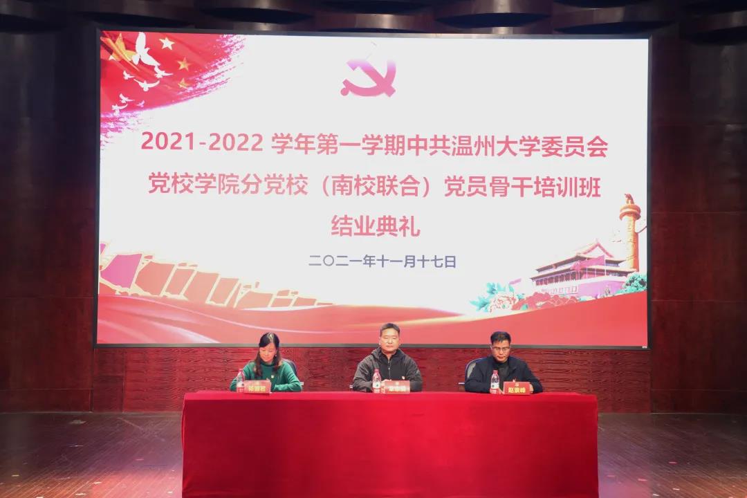 2021年11月17日,2021-2022学年第一学期中共beat365网页版登录官网委员会党校学院分党校(南校联合)党员骨干培训班结业典礼在南校音乐厅顺利举行。数理学院党委副书记章志图老师,生命与环境科学学院党委副书记赵崇峰老师,beat365网页版登录官网党委副书记杨丽君老师和全体124名学生党员骨干出席了本次结业典礼。本次结业典礼由beat365网页版登录官网党建负责老师王颖主持。