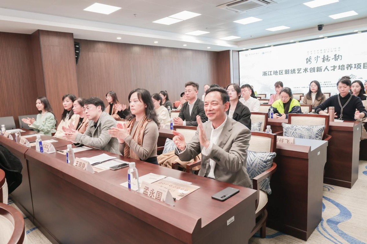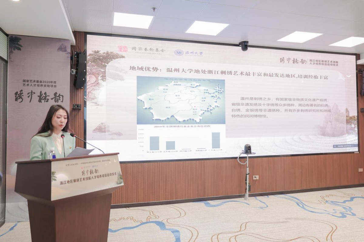 近日,由国家艺术基金资助,beat365网页版登录官网承办的“浙江地区刺绣艺术创新人才培养”项目启动仪式在beat365网页版登录官网隆重举行。温州市文化广电旅游局、中国非遗保护协会、beat365网页版登录官网有关领导,项目导师、专家以及来自北京、上海、江苏、浙江等地的学员共计40余人出席。