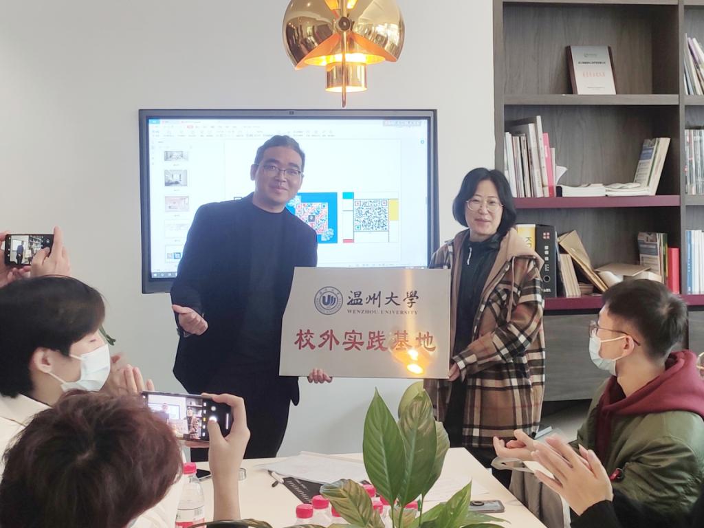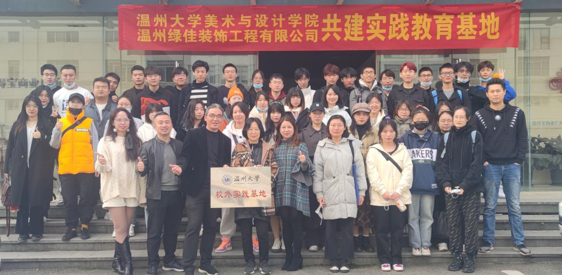 2021年11月25日beat365网页版登录官网和温州绿佳装饰工程有限公司举行“校外实践基地”授牌仪式暨交流座谈会。beat365网页版登录官网环境设计系主任黄玫玮老师、19级环境设计专业全体同学,温州绿佳装饰工程有限公司创始人朱书朋、章道锻先生及公司设计师团队共同参加,举行了校外实践基地的签约与授牌仪式。
