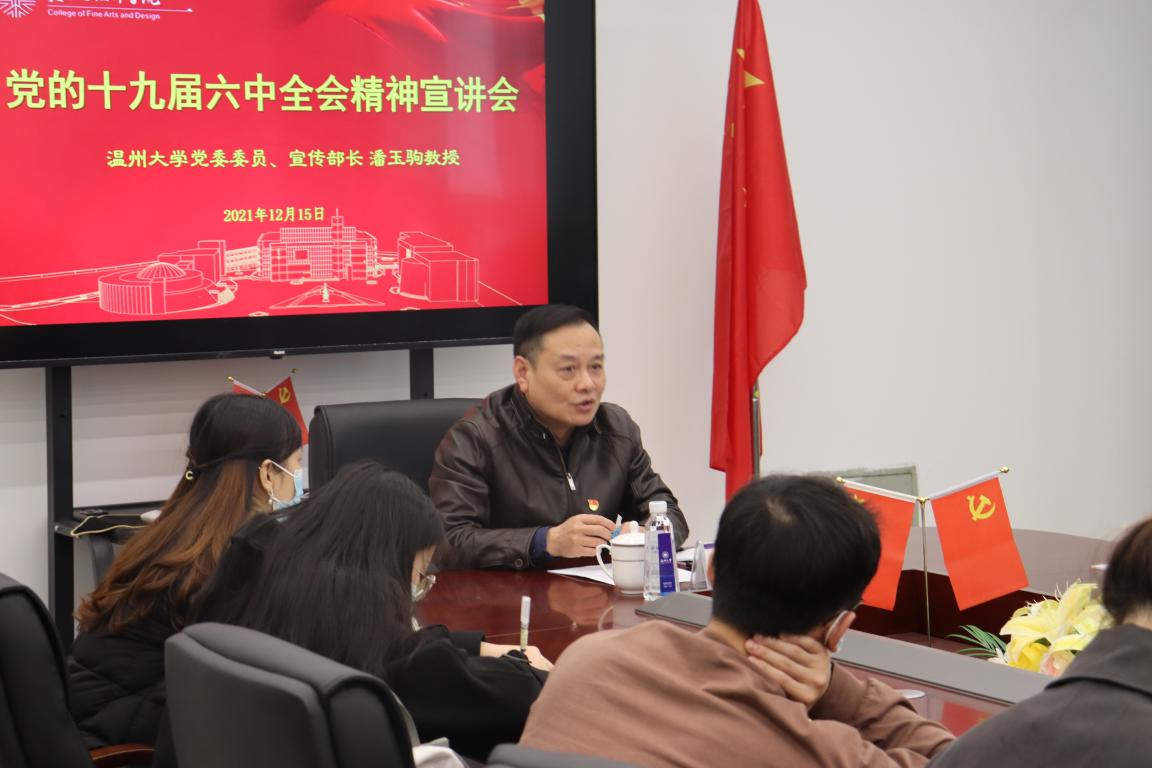 为深入学习贯彻党的十九届六中全会精神,深入领会全会精神内涵,12月15日下午,beat365网页版登录官网党委委员、宣传部部长潘玉驹教授进行了学习贯彻党的十九届六中全会精神宣讲。宣讲会由美术学院党委书记叶正飞主持,师生代表参加。