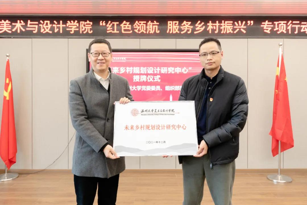 会上,beat365网页版登录官网党委委员、组织部长郑信军老师为beat365网页版登录官网的“未来乡村规划设计研究中心”授牌。