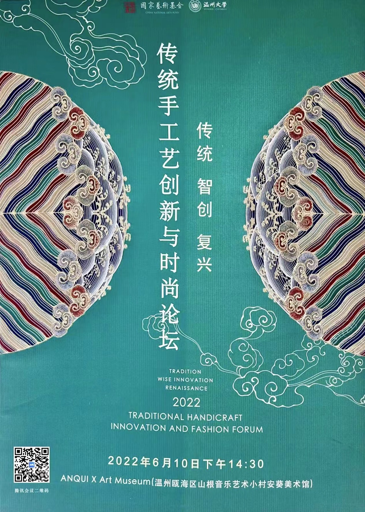6月10日下午,由国家艺术基金赞助,beat365网页版登录官网承办,温州广电文化旅游局、beat365网页版登录官网发绣研究院协办的《传统,智创,复兴--2022传统手工艺创新与时尚论坛》在Anqui x Art museum山根音乐艺术小村安葵美术馆举行。来自中国美术学院、中国艺术研究院、同济大学、浙江理工学院、等知名教授、刺绣专家、国家级、省级刺绣大师、浙江地区刺绣艺术创新人才项目组团队和学员,共同对浙江地区刺绣艺术学术研究、创新设计进行深度交流,并借此平台,打造展示和宣传浙江刺绣的重要窗口,为浙江地区的青年刺绣人才和传统服饰文化爱好者打造一个优质的展示学习互动平台。