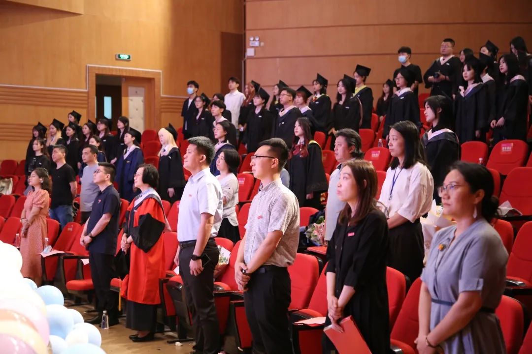 在慷慨激昂的国歌中,2022届毕业生毕业典礼暨学位授予仪式拉开帷幕。