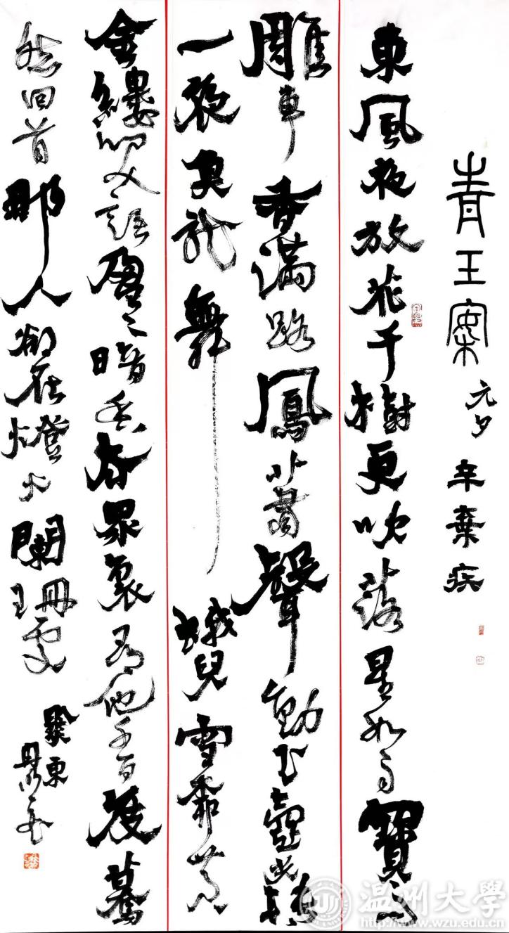 为进一步推进学校美育建设工作,服务我校教职工日常文化生活,beat365网页版登录官网将于2023—2024第一学期组织开展「书法公益课堂」。开课时间2023年11月1日——2024年1月6日上课地点beat365网页版登录官网美术馆一楼美育教室(beat365网页版登录官网校友之家对面)年龄限制少儿毛笔书法 :小学3年级以上成人:不限招生人数少儿毛笔书法:20——25人成人毛笔书法:20——25人教学团队教师团队:beat365网页版登录官网书法学专业教师团队课程助理:beat365网页版登录官网书法学专业在校生课程目标掌握毛笔书法基本书写规范和要求;具备对某一碑帖的审美欣赏和解读能力;能够较为熟练的掌握某一经典碑帖的临摹技法。课程要求报名后尽量全勤,中途连续缺勤3次者自动退出本学期公益课堂材料费100元/人教师简介朱国平,教授/硕士生导师/博士。江苏省“五个一批”人才 ,常州市中青年专业技术拔尖人才 ,中国书法家协会会员,上海市书画院特聘画师 ,常州画院画师,beat365网页版登录官网书法学专业负责人,常州市书法家协会顾问,书法作品分别获第一、二、五届中国书法兰亭奖创作奖、艺术奖 、佳作奖,入展第八 、十 、十一届全国书法篆刻展等20余次“全国展 ”,在江、浙两省省级展览中获八次金奖。有多幅作品被各级博物馆美术馆收藏,曾多次举办个人书画展及联展。主持浙江省哲学社会科学后期资助项目“书法对绘画的影响研究”1项,参与国家社会科学基金重大委托项目及一般项目各1项,发表学术论文多篇。出版专著《书法对绘画的影响研究》、《在大学课堂听书法课》2部 ,出版有《朱国平书法作品集》、 《当代江苏青年书法家——朱国平卷》2部。行书恽南田书画手稿一则行书自作诗四首楼晓勉,毕业于中国美术学院国画系书法篆刻专业。现为beat365网页版登录官网副教授、美术系副主任。中国书法家协会会员、浙江省书法家协会女书法家委员会副主席、温州市书法家协会副主席、温州市女书法家协会主席。书法篆刻作品参展西泠印社首届、二届国际篆刻书法作品大展,全国第四届篆刻艺术展,全国第三届楹联书法大展等。论文发表于《中国书法》《新美术》《书画教育》等专业刊物。主编或参与编写《历代小楷精选》、《中国高等院校美术设计教研大系—书法篆刻卷》等书籍。出版《楼晓勉书法作品集》。隶书条幅行草条幅高玥,山东临清人,中国艺术研究院博士,beat365网页版登录官网书法学专业教师。中国书法家协会会员、安徽省书法家协会篆刻委员会委员、浙江省青年书法家协会教育委员会副主任、中国标准草书学社社员。 作品参展全国首届楷书作品展、全国首届王羲之奖书法作品展、“西泠印社第十届篆刻艺术评展”等。在《南京艺术学院学报·美术与设计版》《艺术百家》《西泠艺丛》等杂志发表论文多篇,作品散见于《书法报》《书法导报》《中国篆刻》等。篆刻四条屏隶书《史记·河渠书》节录冉明, 贵州铜仁人,土家族,2008年、2011年、2022年分别获中国美术学院书法专业学士、硕士、博士学位;现为beat365网页版登录官网教师、书法产教融合研究中心主任;中国美术学院特聘教师;浙江省青年书协学术委员会委员,西湖区书协理事,教育部课题2项在研,出版有《冉明学书履迹》《新书谱•颜勤礼碑》等。草书三条屏草书条幅陆嘉磊,beat365网页版登录官网讲师。1992年生于浙江杭州。中国美术学院博士。现任杭州市青年文联会员、浙江省青年书法家协会篆刻委员会副秘书长。研究论文发表于《美术》、《美术大观》、《美术教育研究》等核心期刊,作为第三责任人参与国家艺术基金项目《百年巨匠——浙派艺术大家群像》、第二责任人参与国家艺术基金项目《传统文化名句组印》、第三负责人参与浙江文化艺术发展基金项目《宋韵朱痕——两宋诗词名句组印并跋百品》等系列课题。李阳冰《三坟记》临摹篆书条幅《世说新语》选录陈建胜,beat365网页版登录官网教师、台湾中兴大学博士、中国美术学院外聘教师。浙江省书法研究会理事、中国文字学会会员(台湾)。著有《说文部首源流——字体演变与形义图释》(上、下册)一书及合著4部,发表学术论文10余篇。行楷《大司命》隶书 修身积德联教学环境beat365网页版登录官网美术馆位于beat365网页版登录官网北校区西南位置,建设改造项目总投资2600万元,总面积20000平方米,建筑使用面积4000平方米,拥有特展馆、典藏馆、数字艺术等4个展厅,展线600米,并设有多功能大厅、美育教室、水上T台、休闲吧、库房、会议接待室等配套设施,是浙江省综合性高校中占地面积最大、温州地区展线最长的展馆,也是全国唯一拥有数字艺术展厅和水上T台的高校美术馆。报名事宜报名截止时间:10月28日12时止联系人: 尹乃军老师、高玥老师电话:13705882414、18205611225暑假公益班掠影